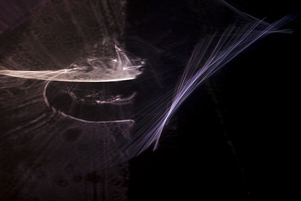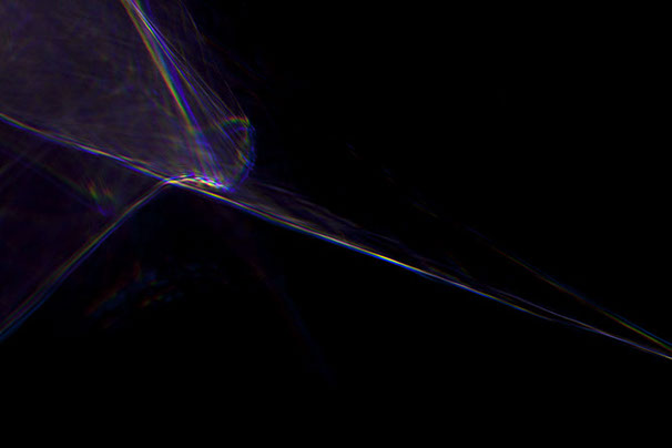 These images are concerned with the structural form of light – one of the preconditions for photography. The word ‘photography’ itself derives from the Greek words for ‘light’ and ‘writing’ and is a technology that developed concurrently with modern revelations regarding the nature of light. In this work, the camera lens itself is manipulated to record not conventional perspectival space, but light itself. Light is therefore both the subject and form of these photographs.